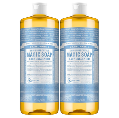 Dilute 4:1 for gentle, clean, low-tox laundry soap that won’t irritate skin. Has 17 other uses, too.